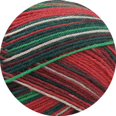 "Lana Grossa Meilenweit 100 Merino Christmas 6801 Hellrot/Rot/Grün/Weiß"