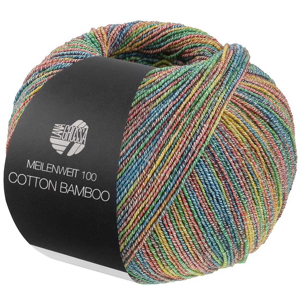 "Lana Grossa Mw 100 Cotton Bamboo Pepita 2506 Jeansblau/Gelb/Grün/Dunkelrot/Karamell 100g"